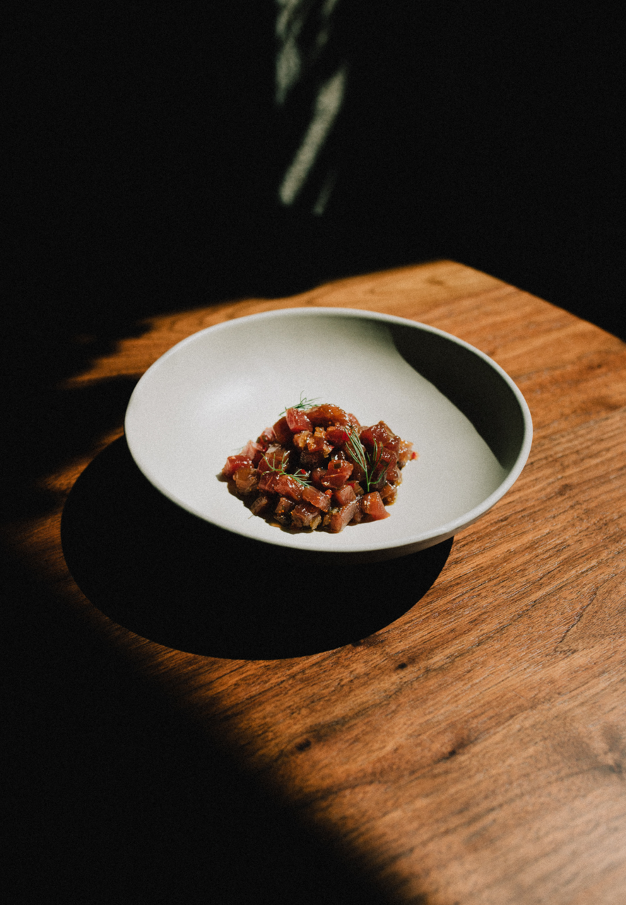Through the use of natural lighting and low camera angles, the food imagery is contextual and grounded, closely simulating the experience of a guest being presented with a dish at the restaurant.
